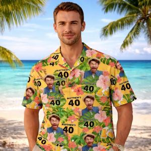 Personalized Face Hawaiian Shirt Personalized Birthday Men Name And Age Hawaiian Shirt Party Gift40% OFF -