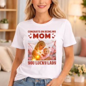 Custom Photo Lucky Lady Congrats On Being My Mom Family Bright Shirt Mothers Day Gift40% OFF -