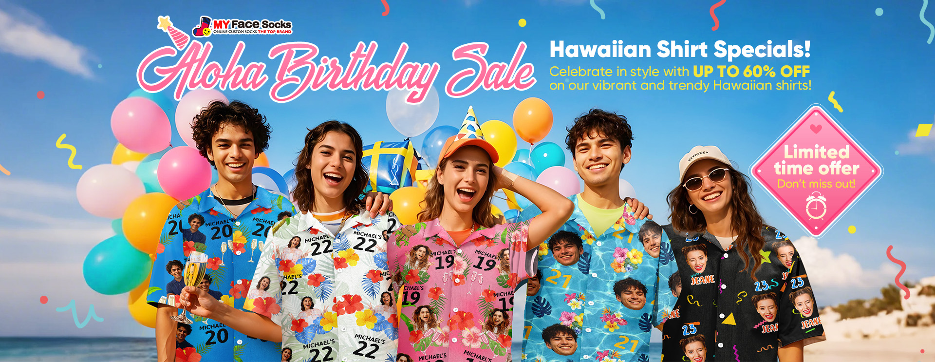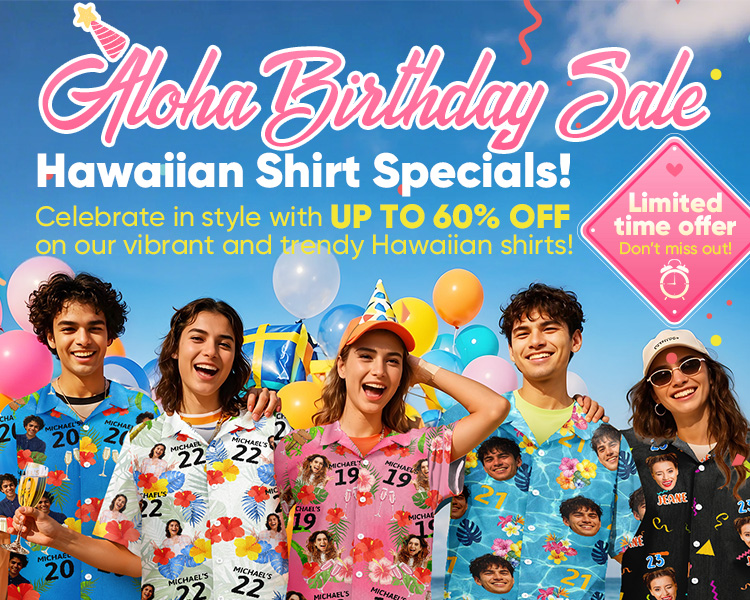 Custom Face Hawaiian Shirt Personalized Birthday Cake Name and Age Face Women Hawaiian Shirt Birthday Party Gift -