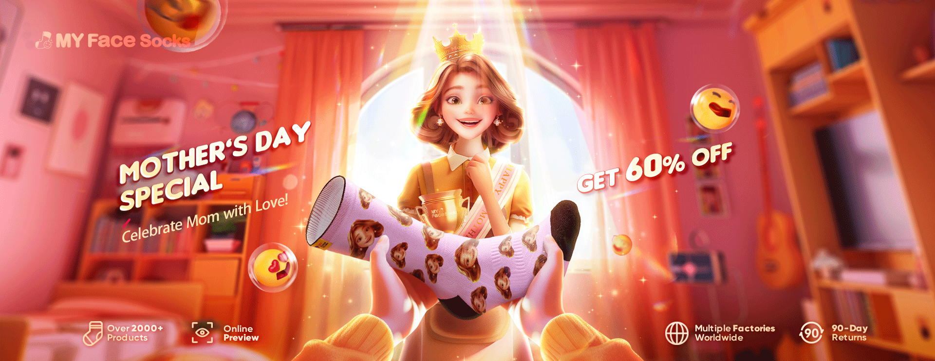 Custom Breathable Face Socks Glorious Mom Mother's Day Gifts -