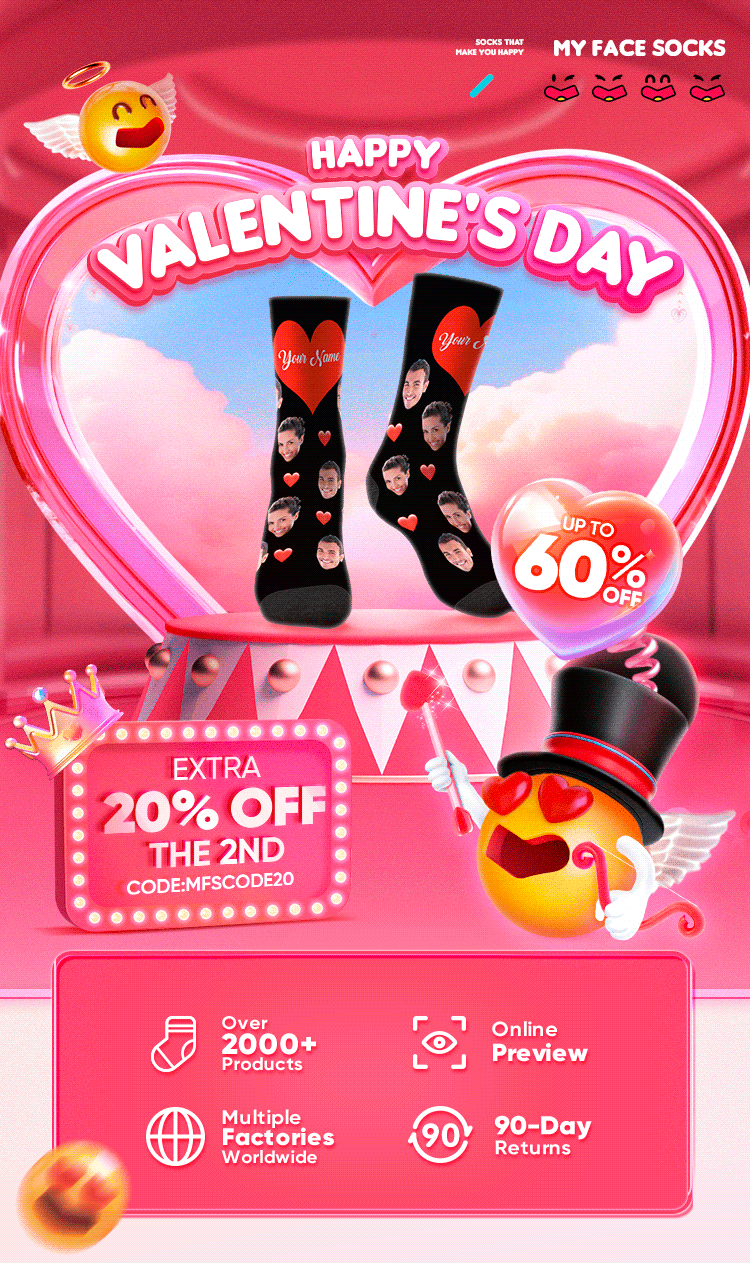 Personalized Red Heart Face Socks Valentine Themed Socks Custom Face Socks Couple Gift -