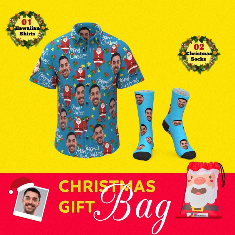 Christmas Gift Bags Custom Face Hawaiian Shirts And Socks Set For Him