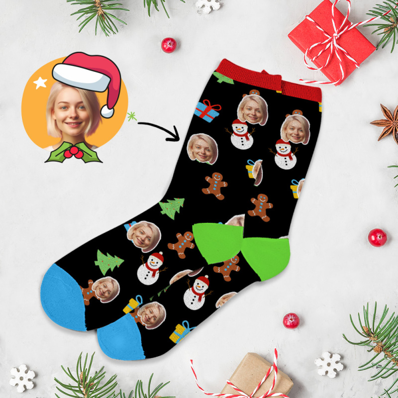 Christmas Gift Custom Face Socks Multi -face Breathable Add Pictures Colorful Photo Socks Gifts