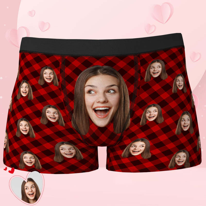 Gift Ideas Custom Face Boxer - Red and Black Check