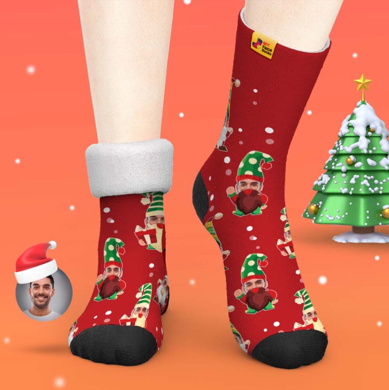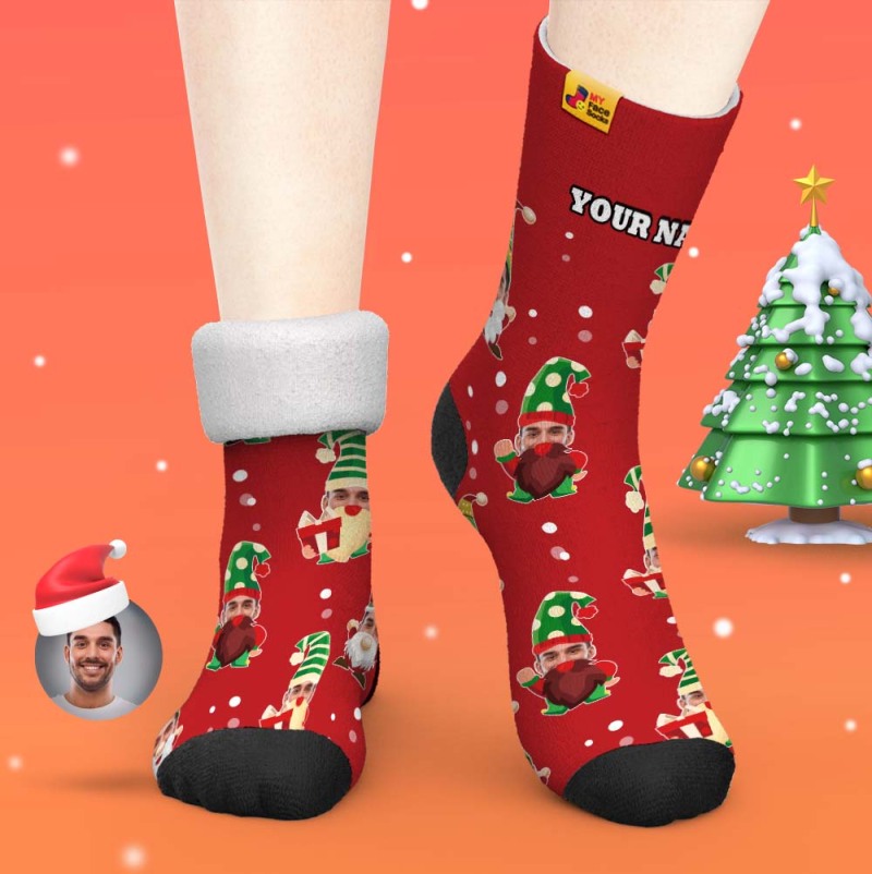 Christmas Gifts,Custom Thick Socks Photo 3D Digital Printed Socks Autumn Winter Warm Socks Bearded Gnome