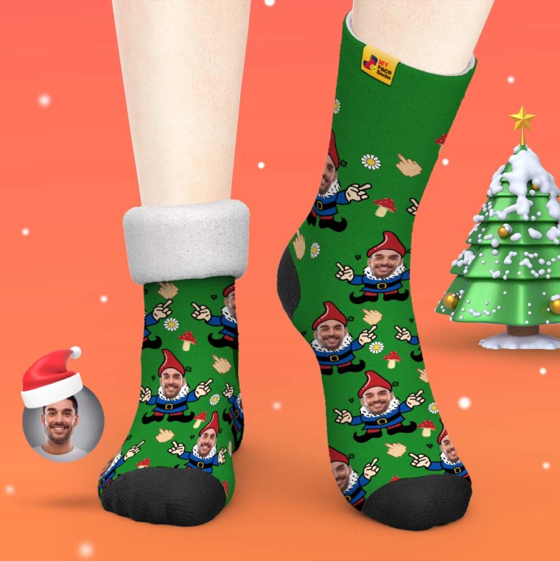 Christmas Gifts,Custom Thick Socks Photo 3D Digital Printed Socks Autumn Winter Warm Socks Gnome