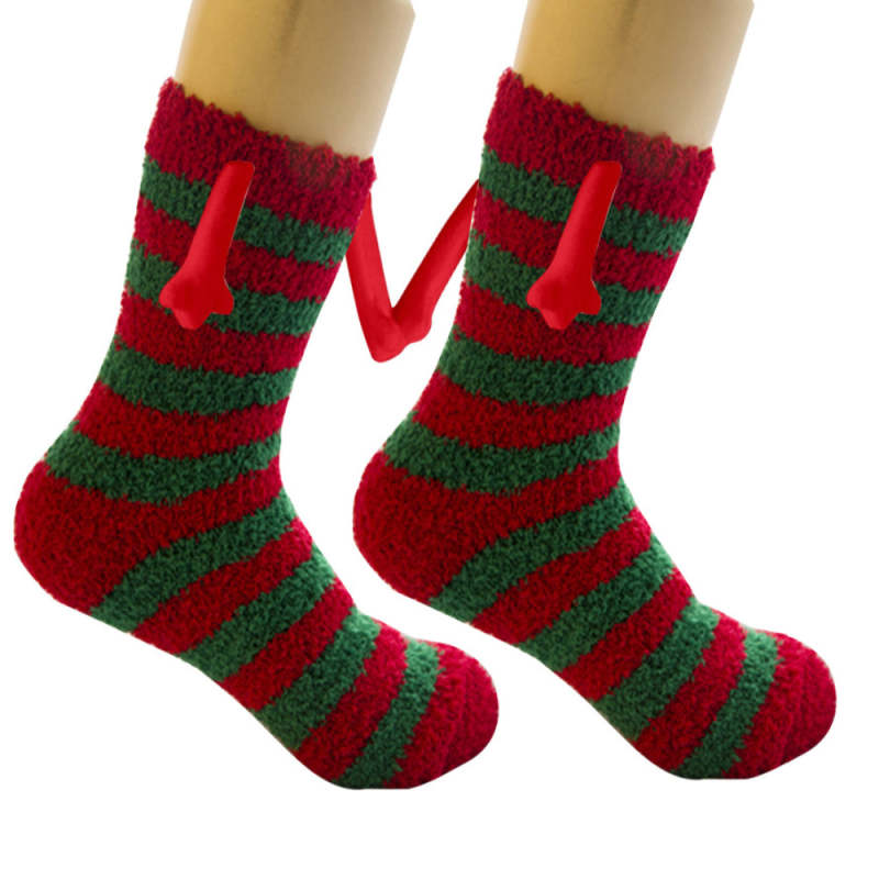 The arms on both sides of these Christmas hand-in-hand socks have built-in magnets that create an attraction when you get close, allowing you to hold hands with your partner. Made from high-quality material, these socks are both comfortable and durable. Get a pair for yourself or give it as a gift to someone special. Spread some joy with our funny magnetic hand-in-hand Christmas socks!