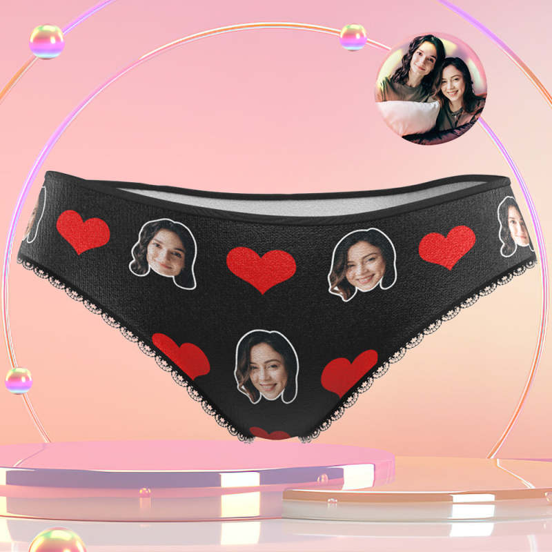 Couple Women's Custom Face Heart Panties Personalized LGBT Gifts