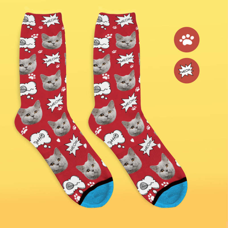 Custom 3D Digital Printed Face Socks Add Pictures and Name - Meow