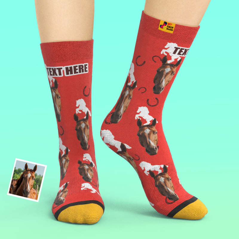 Custom 3D Digital Printed Socks Add Pictures and Name Horse