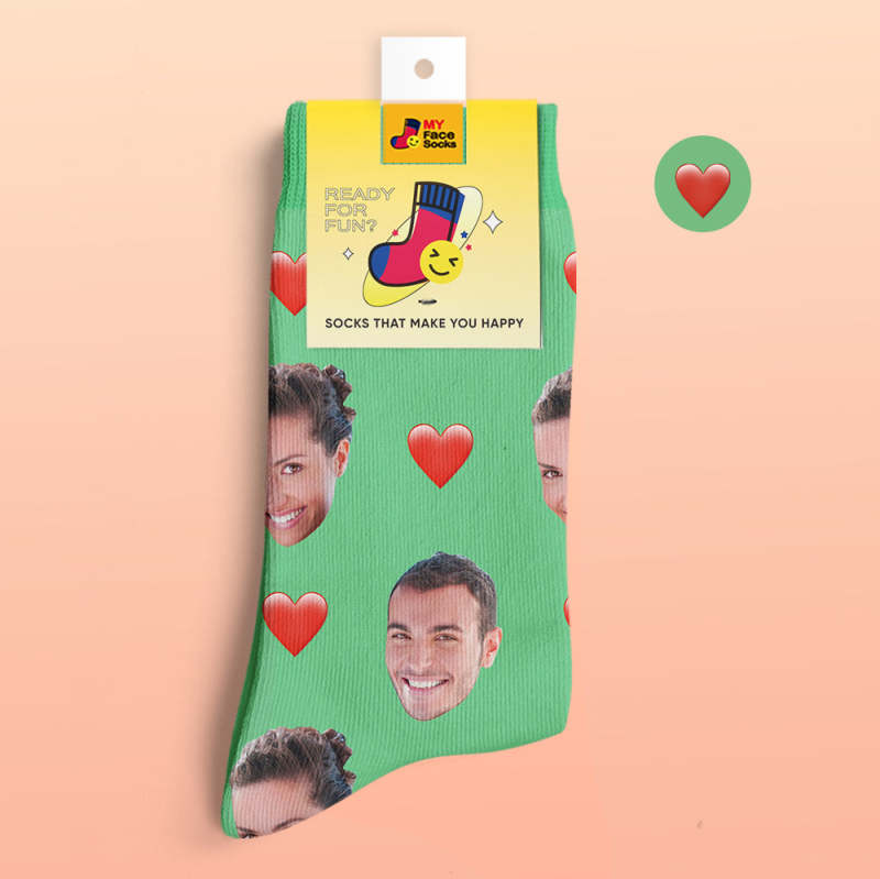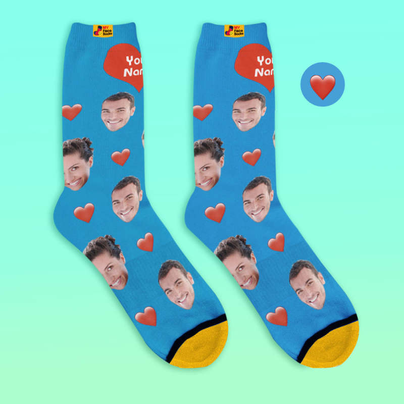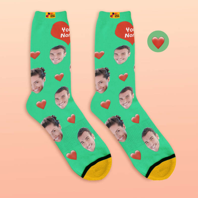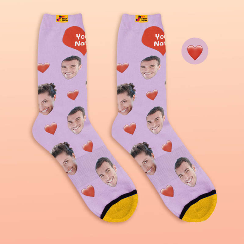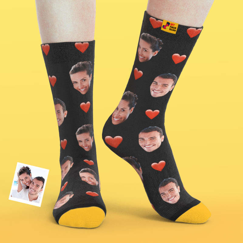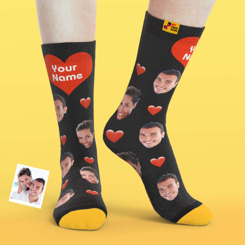 Custom 3D Preview Socks My Face Socks Add Pictures and Name - Heart