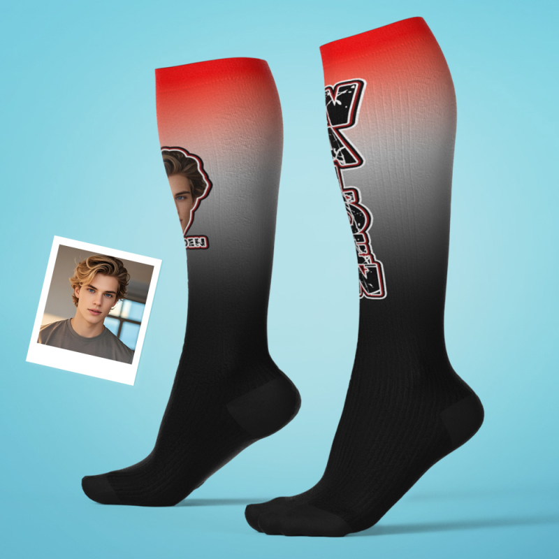 Custom Athletic Knee High Socks Gradient Blue And Yellow High Socks Personalized Compression Socks Face and Text Knee High Socks