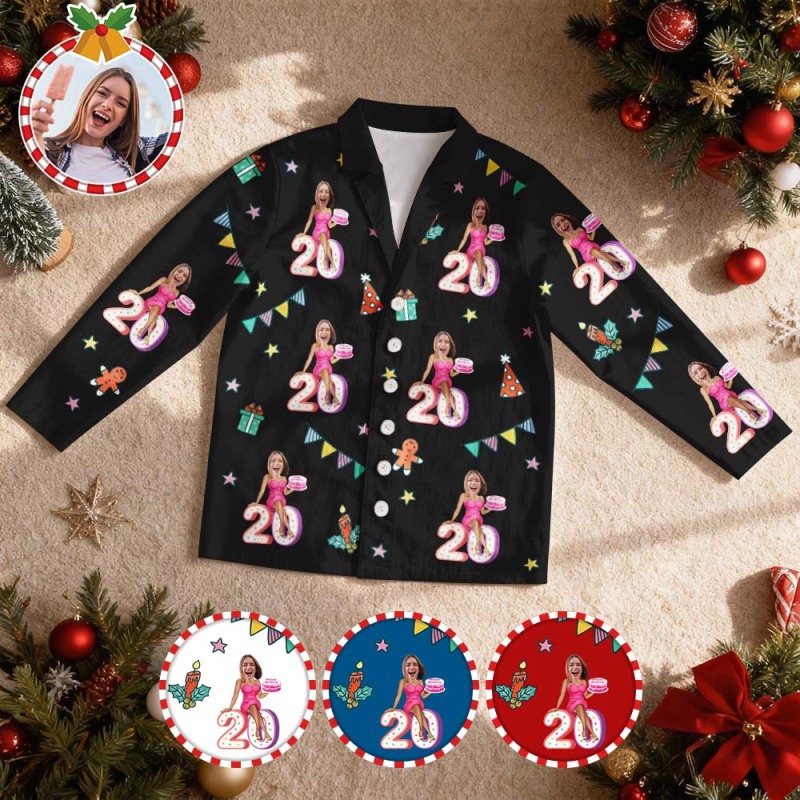 Custom Birthday Face Long Sleeve Pajamas with Cake Personalized Photo Pajamas Gift