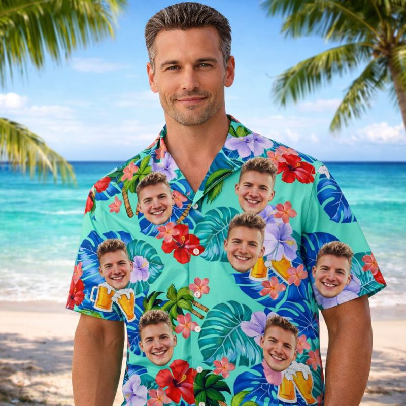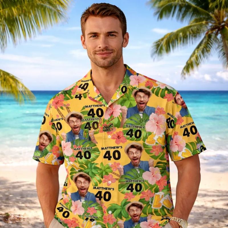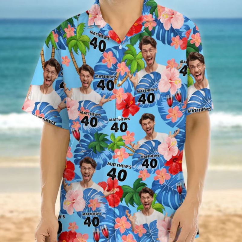 Custom Birthday Photo Tropical Style Hawaii Shirt Summer Gift