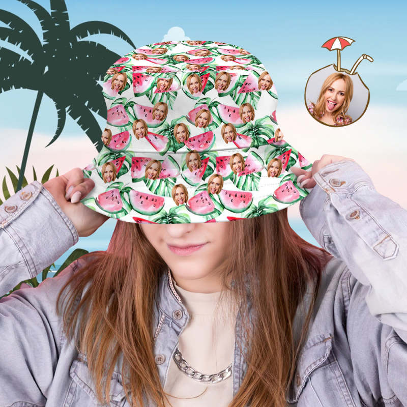 Custom Bucket Hat Personalized Face All Over Print Tropical Flower Print Hawaiian Fisherman Hat - Watermelon