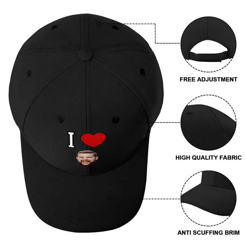 Custom Cap Personalised Face Baseball Caps Adults Unisex Printed Fashion Caps Gift - I Love