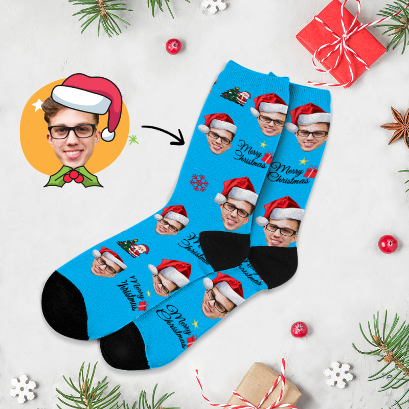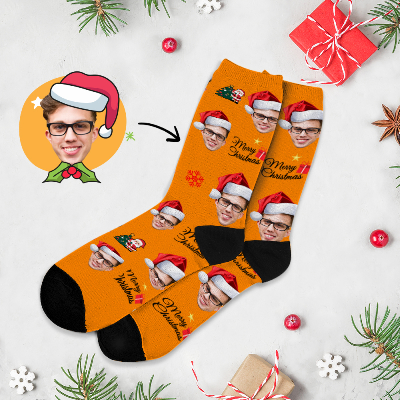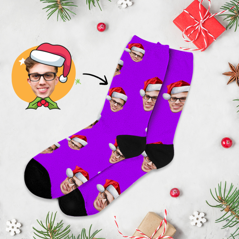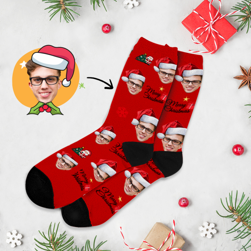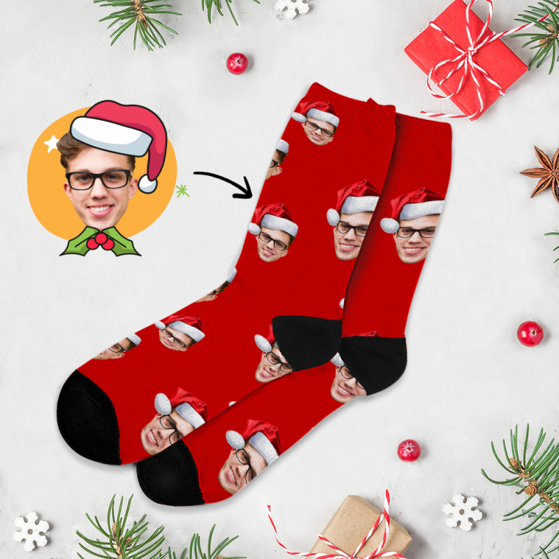 Custom Christmas Full Face Photo Printed Socks Personalized Custom Designs Best Gift Idea for Xmas