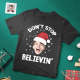 Custom Christmas Face T-shirt Do not Stop Believin Santa Claus Funny Christmas Photo T-Shirt