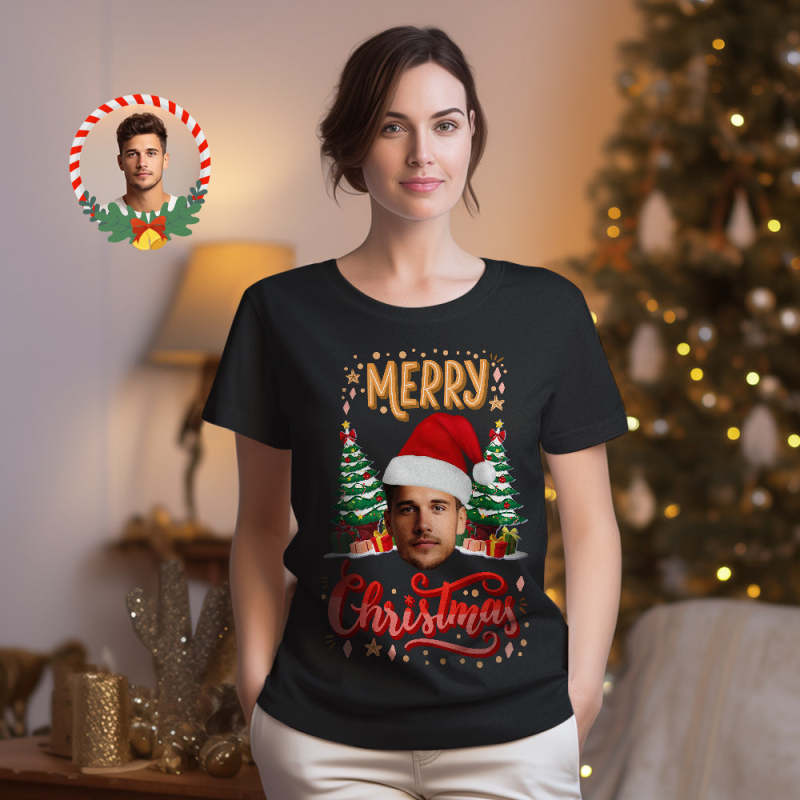 Custom Christmas Face T-shirt Funny Merry Christmas Photo Shirt