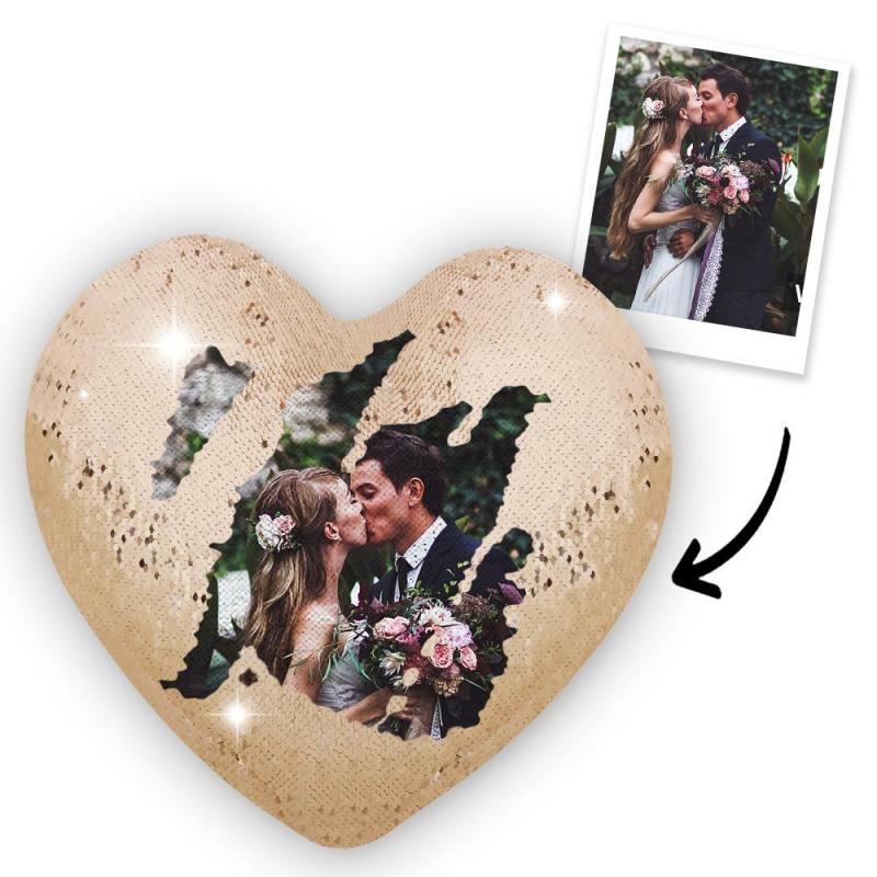 Custom Couple Photo Heart Magic Sequins Pillow Multicolor Sequin Cushion