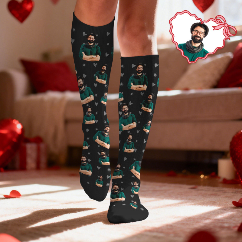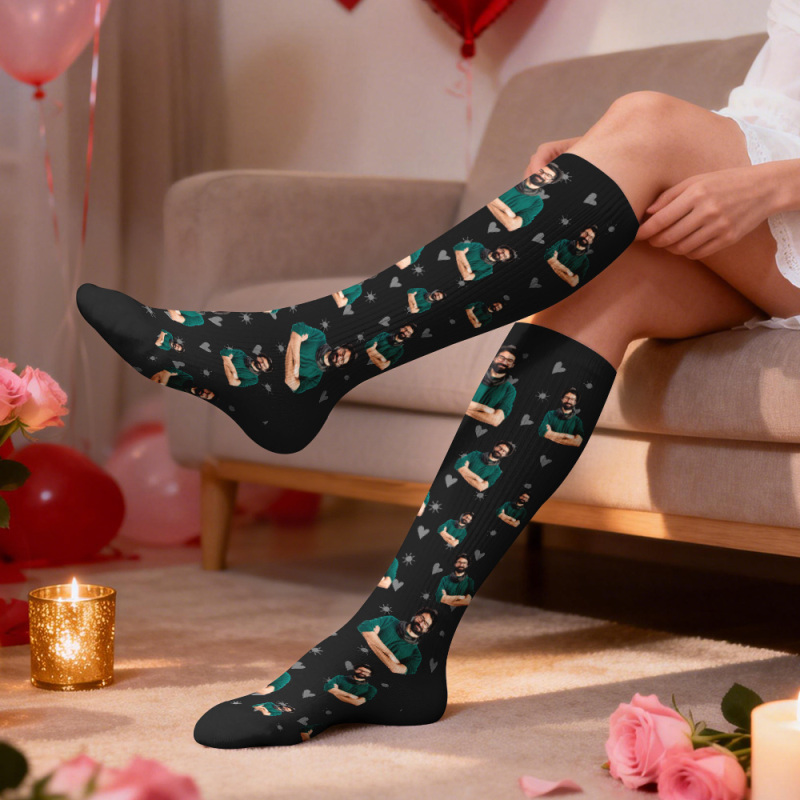 Custom Cute Pet Face Compression Socks Personalized Knee-High Socks with Photo Gift for Pet Lover