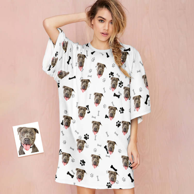 Custom Dog Face Nightdress Personalised Photo Women's Oversized Colorful Nightshirt Bone Gifts For Women