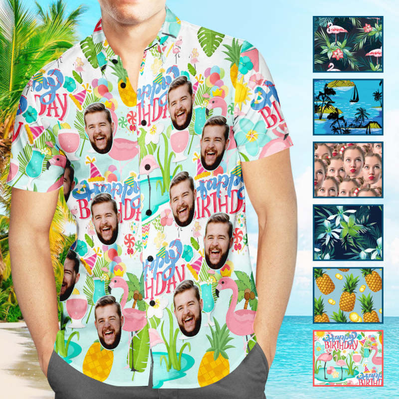 Custom Face Hawaiian Shirt Men's Photo Shirt All Over Print Shirt - Flowers And Leaves