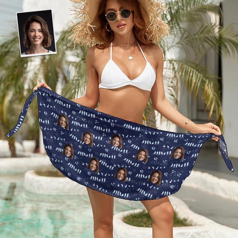 Custom Face Beach Wrap Women Short Sarongs - Navy Blue