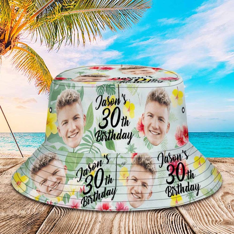 Custom Face Birthday Pink Bucket Hat Unisex Face Personalized Outdoor Summer Age and Birthday Hawaiian Hats Gift
