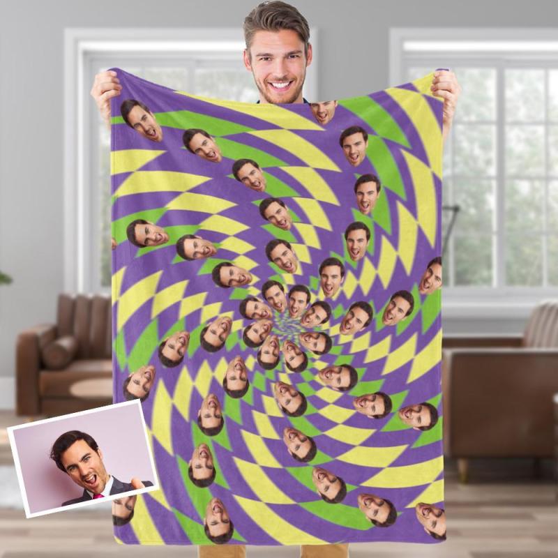 Custom Face Blankets Personalized Fleece Blanket Gifts For Family - Moving Optical Illusion