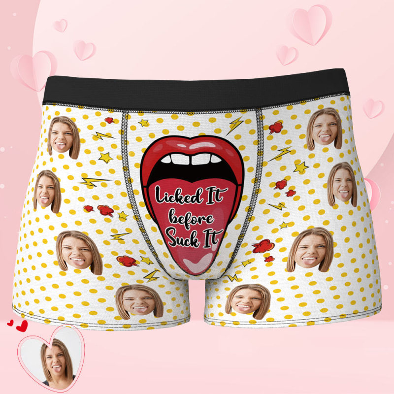 Custom Face Boxer Men's Underwear Gifts For Boyfriend and Husband - Licked it before Suck it