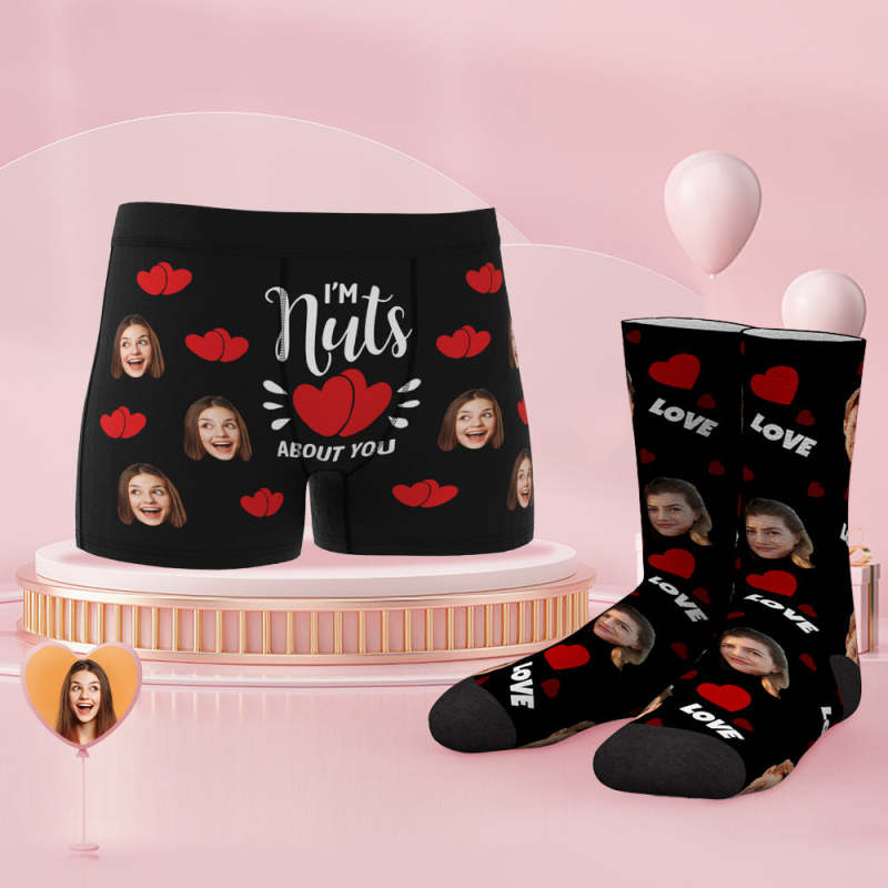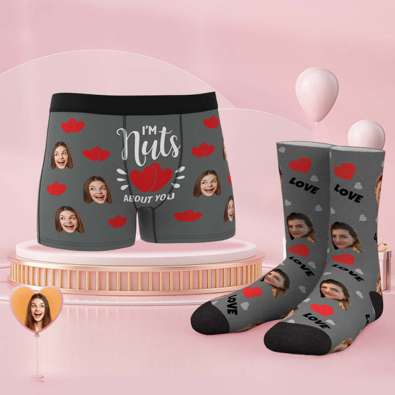 Custom Face Boxer Shorts And Socks Set I'm Nuts About You