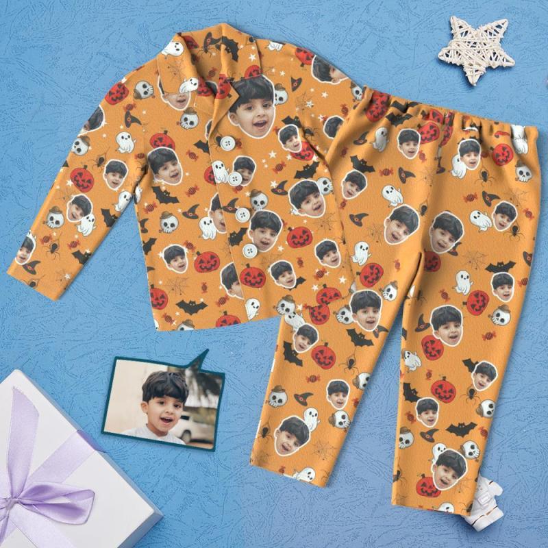 Custom Face Children's Halloween Pajamas For Kids Pumpkin And Little Ghost