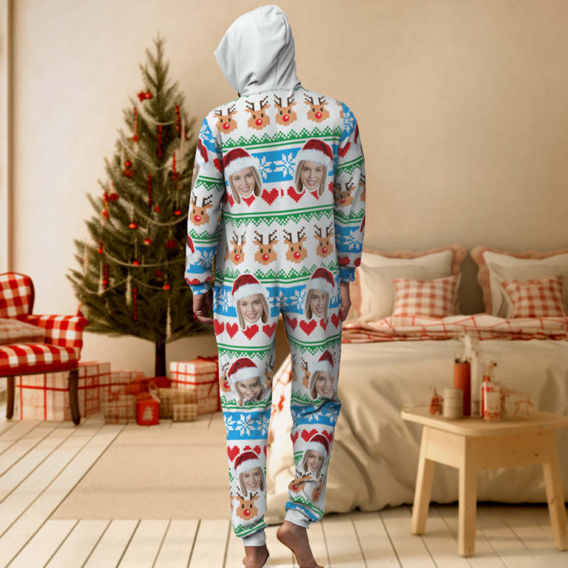Custom Face Christmas Print Onesies Pajamas One-Piece Sleepwear Christmas Gift