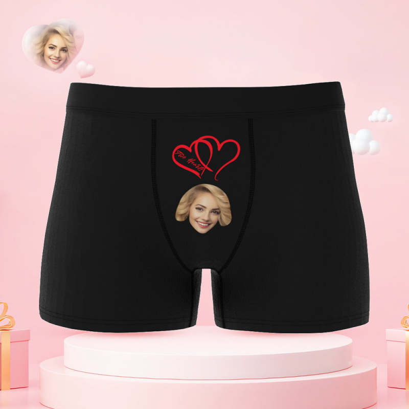 Custom Face Couple Underwear Two Hearts One Love Personalized Underwear Valentine's Day Gift