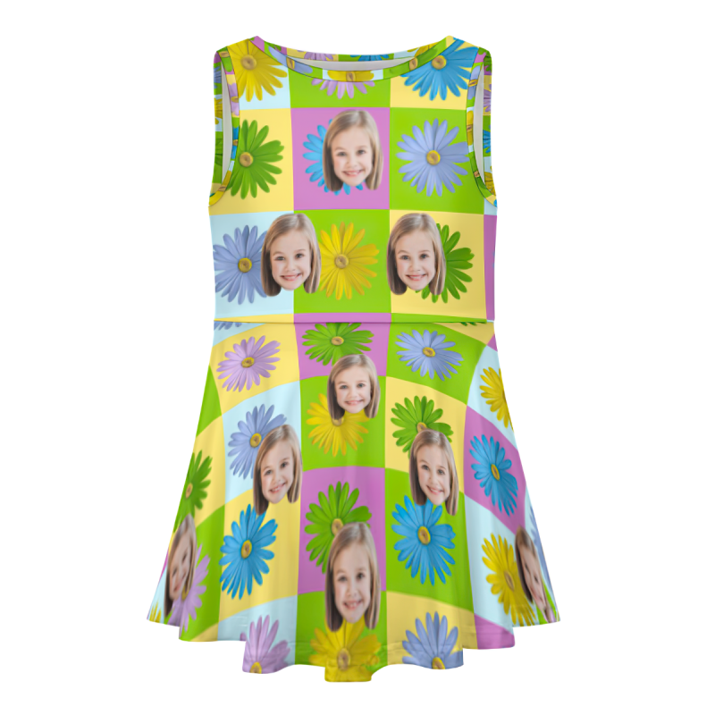 Custom Face Dress Personalised Summer Hawaiian Girls'Dresses Colored Daisies