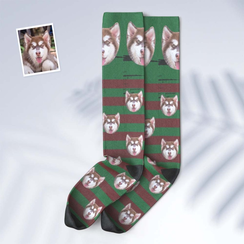 Custom Face Knee High Socks Personalised Pet's Photo Socks Christmas Gifts - Green