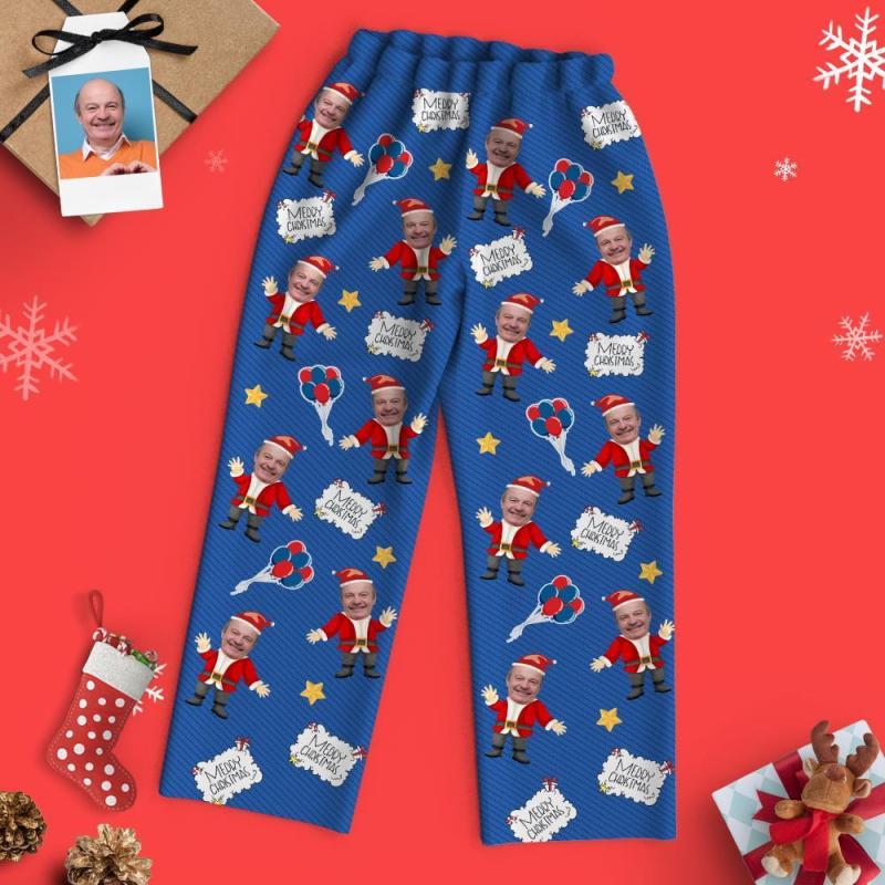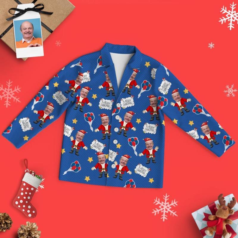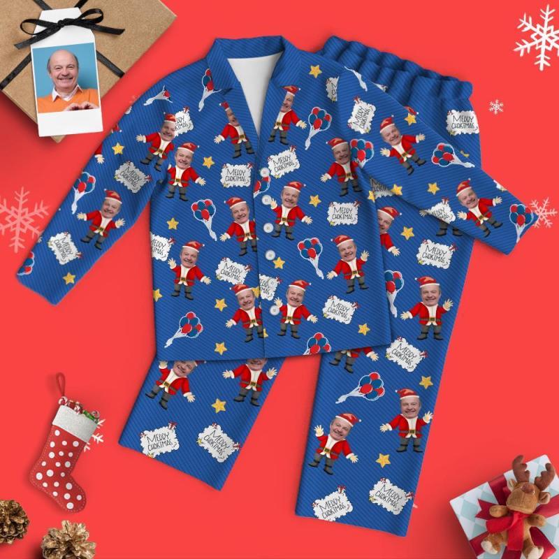 Custom Face Santa Pajamas Family Set - Blue Santa Claus