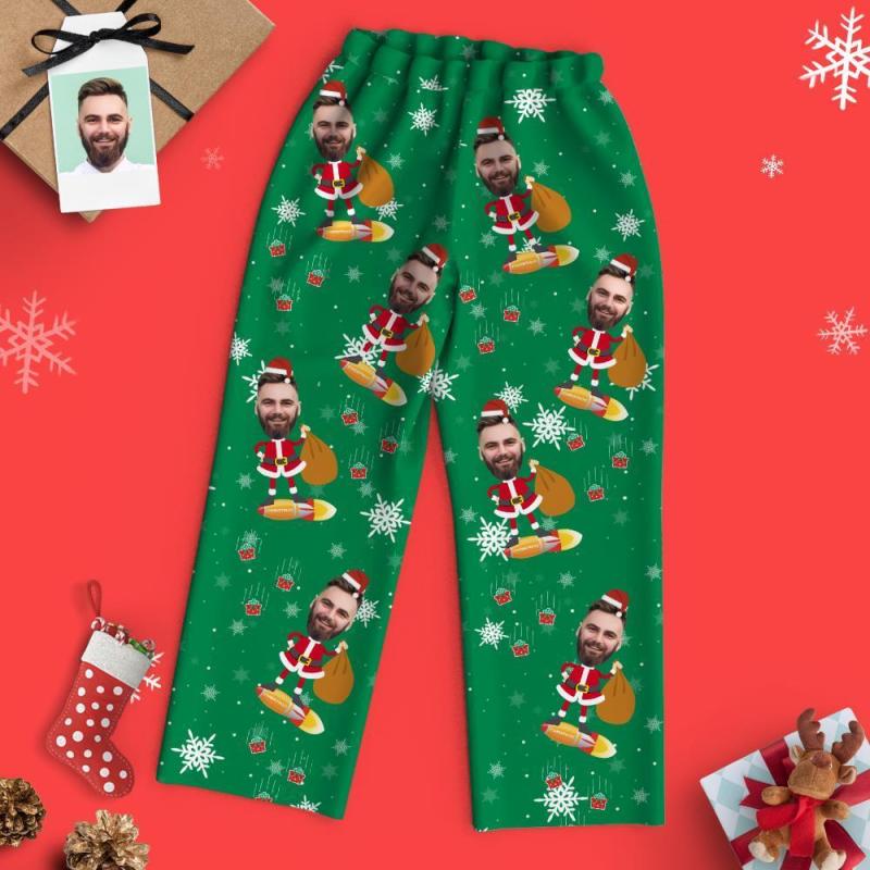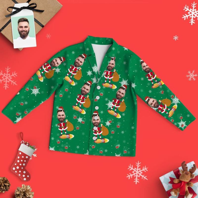 Custom Face Santa Pajamas Family Set - Green Santa Claus