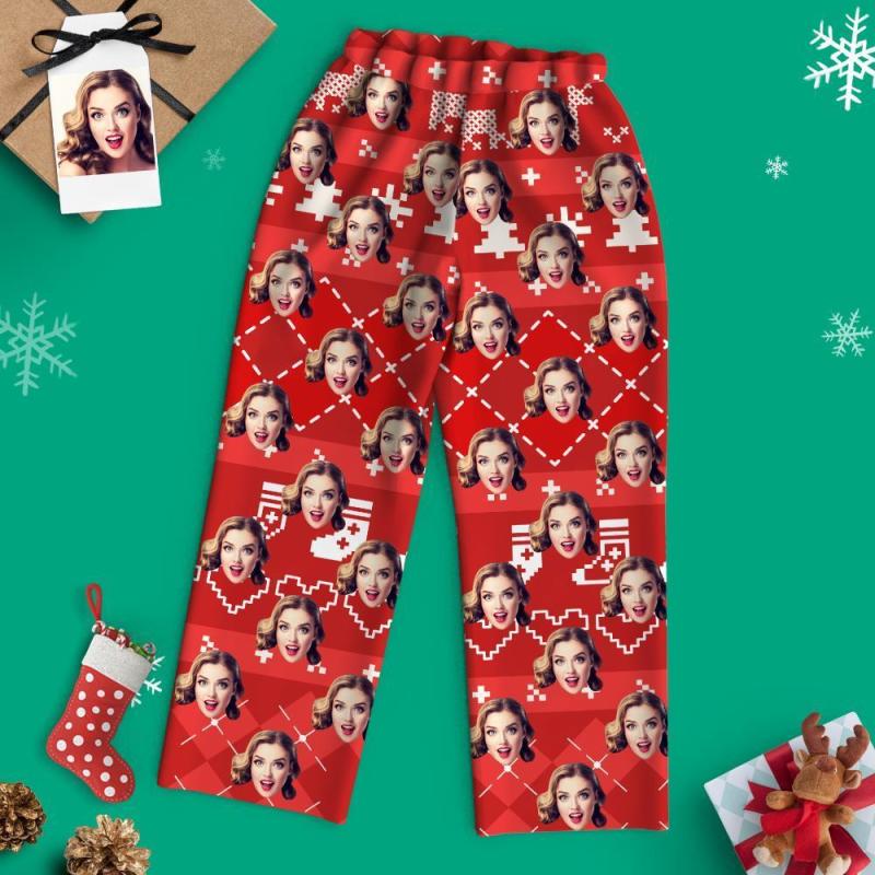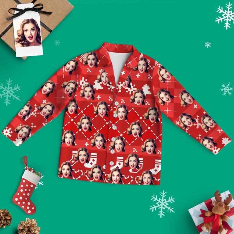 Custom Face Santa Pajamas Family Set - Pixel Lines