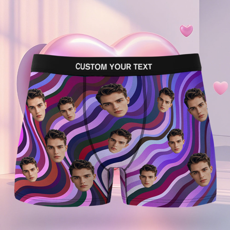 Custom Face Men's Boxer Underwear Gifts for Husband Blue Stripes Men Face Boxer