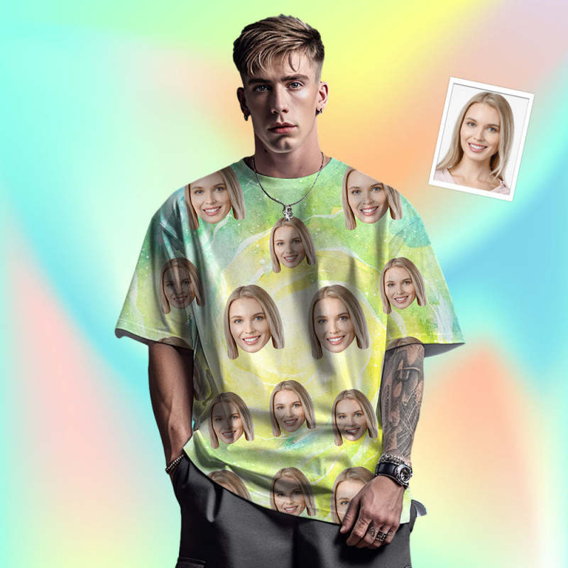 Custom Face Men's T-shirt Personalised Photo Funny Color ink T-shirt Green Color