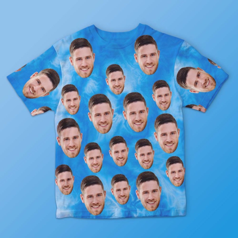 Custom Face Men's T-shirt Personalised Photo Funny Tie Dye T-shirt Gift For Men Blue