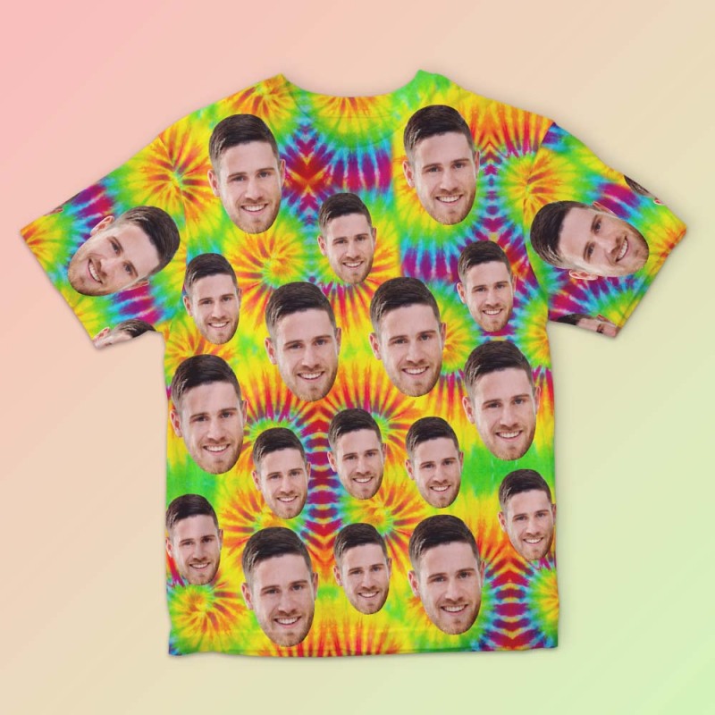 Custom Face Men's T-shirt Personalised Photo Funny Tie Dye T-shirt Gift For Men Colorful