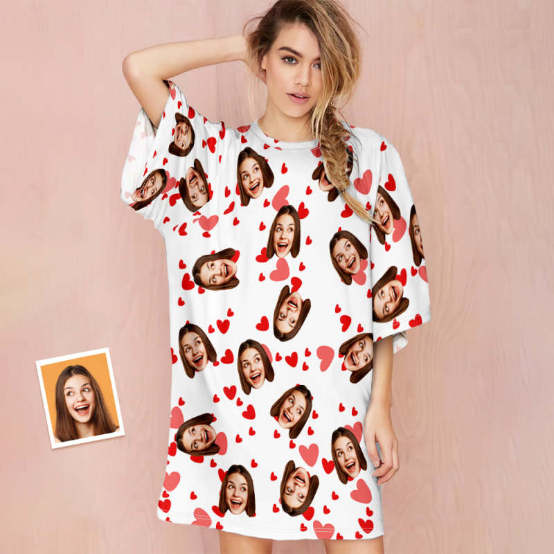 Custom Face Nightdress Personalised Photo Women's Oversized Nightshirt Red Heart Gifts For Her