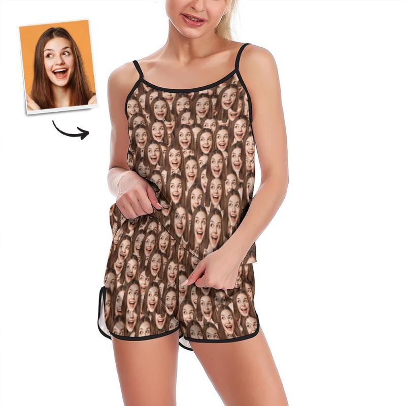 Custom Face Pajamas Suspender Sleepcoat Shorts Lingerie Set Summer Sleepwear - Face Mash