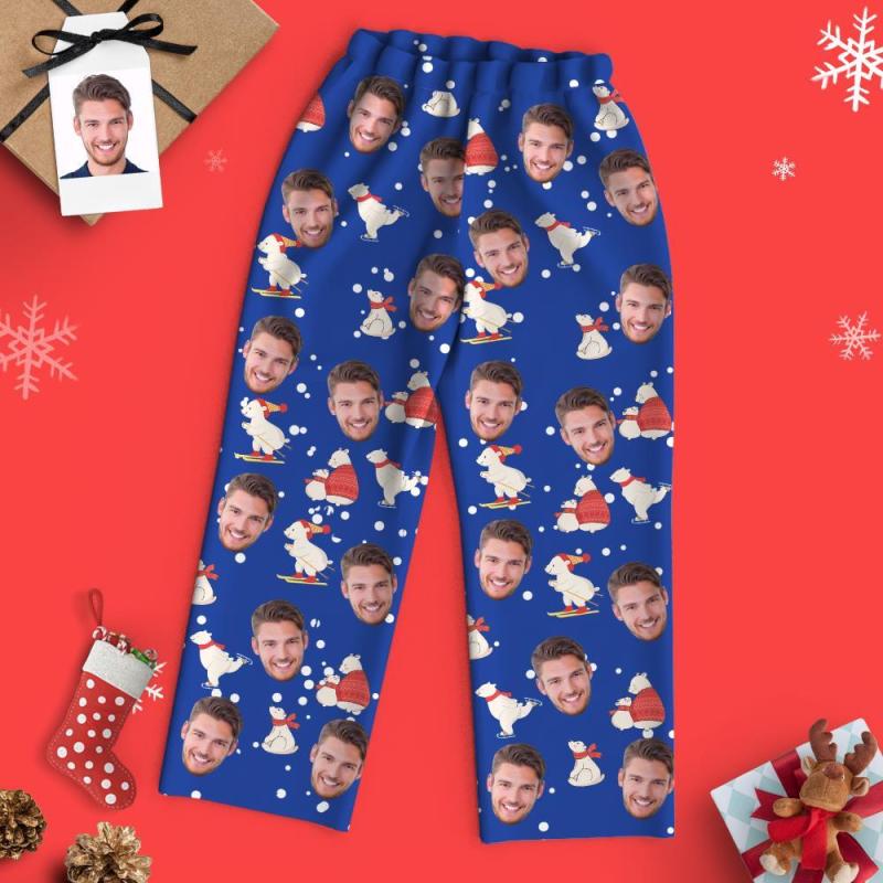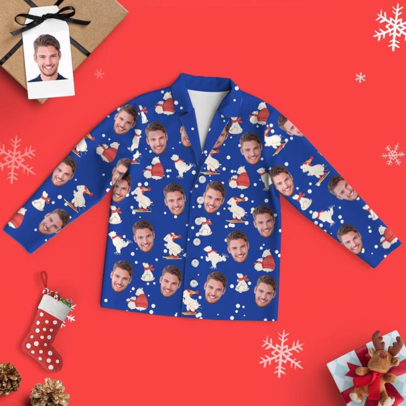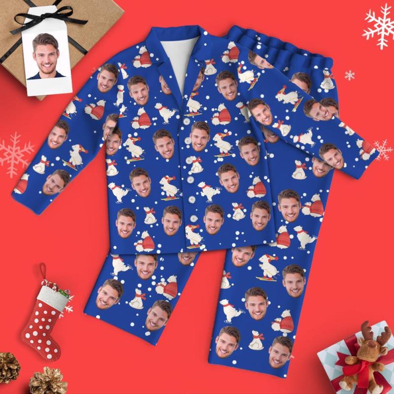 Custom Face Christmas Long Sleeve Pajamas - Skiing Bear