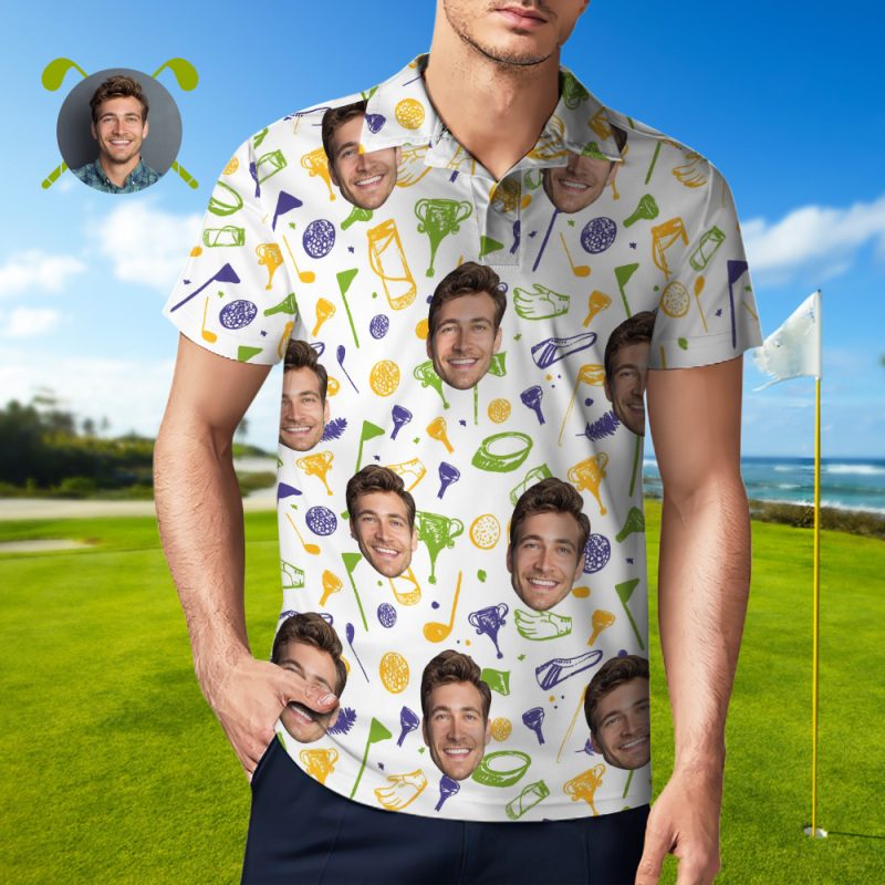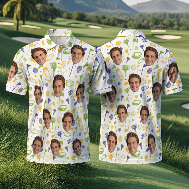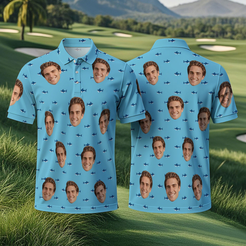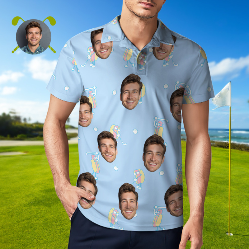 Custom Face Polo Light Blue Golf Polo Shirt Men's Polo Shirt Party Gift