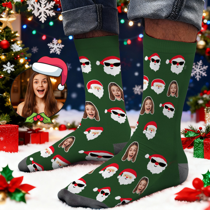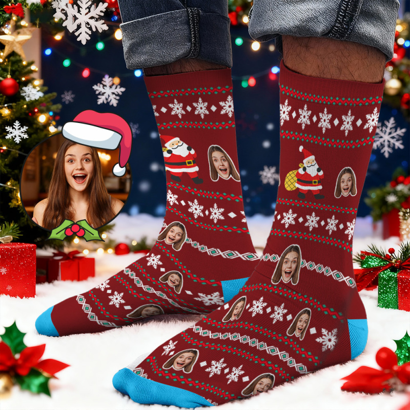 Custom Face Printed Socks Snowflake Santa Claus Face Socks Personalized Custom Designs Best Santa Gift Idea