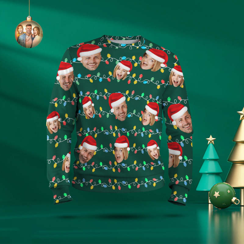 Custom Face Round Neck Hoodie Personalized Photo Christmas Family Xmas Leds Unisex Hoodies